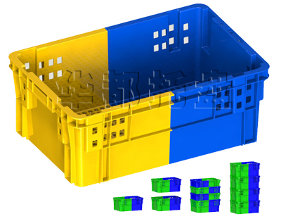 雙色顛倒可堆式塑料箱,提高作業(yè)效率,空箱堆放時(shí)可節省空間,降低成本。